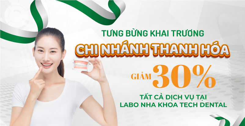 Chương trình khuyến mãi bao gồm: tất cả dịch vụ tại Labo Nha Khoa Tech Dental giảm 30%