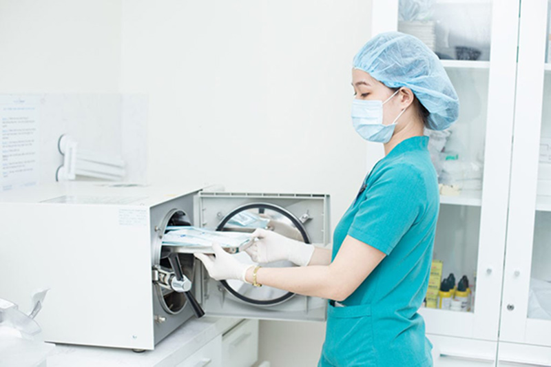 Tiệt Trùng: Dụng cụ sau đó được tiệt trùng bằng nhiệt hoặc khí để loại bỏ tất cả các vi sinh vật còn sót lại.